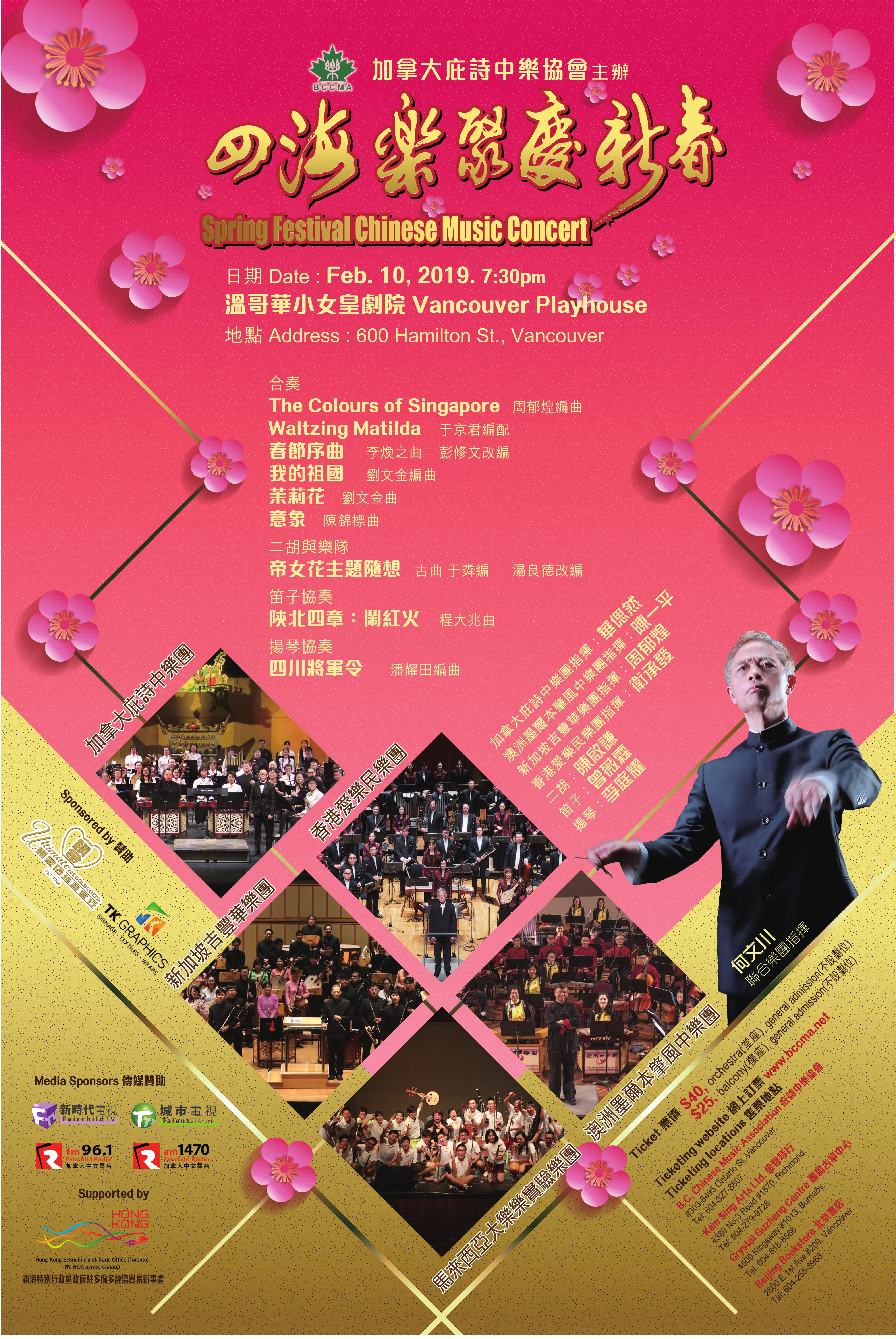 We are very excited to announce that we will be hosting a concert on February 10, 2019, the 6th day of the Chinese New Year. We have invited representatives from different overseas music groups including the Hong Kong Music Lover Chinese Orchestra, Chao Feng Chinese Orchestra from Melbourne, Australia, Keat Hong Chinese Orchestra from Singapore, Vivo Experimental Orchestra from Malaysia to perform together with our members. The joint orchestra with over 70 enthusiastic and talented musicians under conductor master Ho, Man-Chuen, a renowned music educator and conductor, and is currently an instructor at the Hong Kong Academy for Performing Arts and Resident Conductor of the Academy Chinese Orchestra, will perform many popular classical pieces including the well-known “Spring Festival Overture”, ”Princess Chang Ping” and “Jasmine”, the grand and exciting “Sichuan General Commend”, and “My Home Country”, composed by Mr. Liu, Wen-Jin.